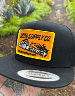 100% Embroidered patch, machine sewn onto classic snapbacks. Produced and manufactured here on the West Coast. Limited amount.